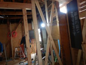 柱のある位置に片引き扉を設置するので柱を半間(約90cm)移設しました 剛性を高めるために梁を追加で設置です
