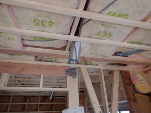 間仕切り及び下地が完成したら壁紙の下地の石膏ボード張りですが、 その前にコンセント、スイッチ、照明の位置に電気の配線を引っ張る仕込工事です
